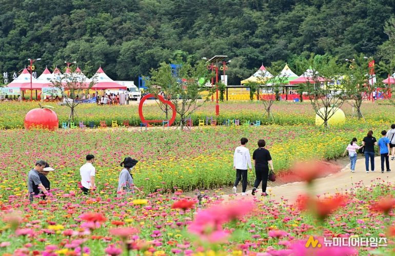 ‘산소카페 청송정원’은 2021년 시범단지 개장을 거쳐 2022년 정식 개장된 이후, 매년 지역주민들과 함께 백일홍 단지를 정성껏 가꿔왔다. 그 결과 매년 9월부터 10월까지 약 두 달간 10만 명이 넘는 관광객이 찾고 있으며, 특히 올해 추석 연휴 기간에는 5만 명 이상의 방문객이 몰려 문전성시(門前成市)를 이루었다.