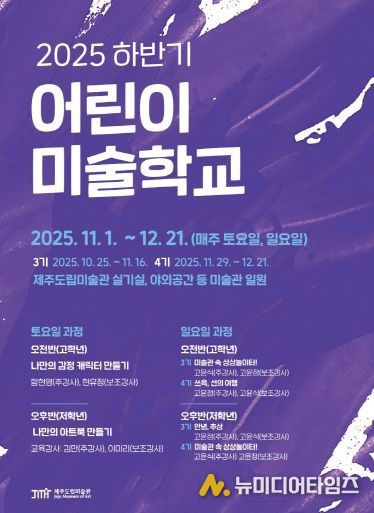 제주특별자치도 도립미술관(관장 이종후)은 10월 25일부터 12월 21일까지 ‘2025 어린이 미술학교’ 하반기 교육프로그램을 운영한다.
