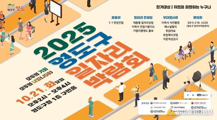 부산 영도구는 구직자와 기업 간 만남의 장을 마련하고 다양한 취업 기회를 제공하기 위해 오는 10월 21일 오후 2시부터 4시까지 영도구청 1층 구민홀에서 ‘2025년 영도구 일자리박람회’를 개최한다고 밝혔다.