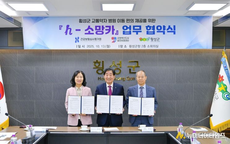 횡성군은 의료 사각지역 교통약자를 위한 병원이동용 차량 지원 사업 추진을 위해 13일 횡성군청에서 건강보험심사평가원(심평원), 강원혁신도시발전지원센터(센터)와 업무협약을 체결했다.