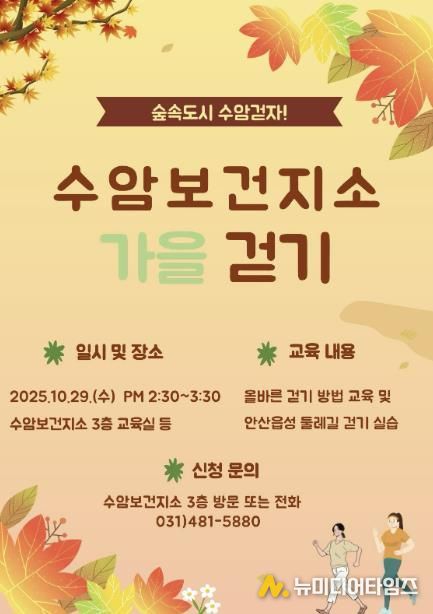 안산시 상록수보건소 수암보건지소는 지역 주민의 건강증진을 도모하기 위해 ‘수암 가을 걷기 교실’ 참가자를 모집한다고 14일 밝혔다.