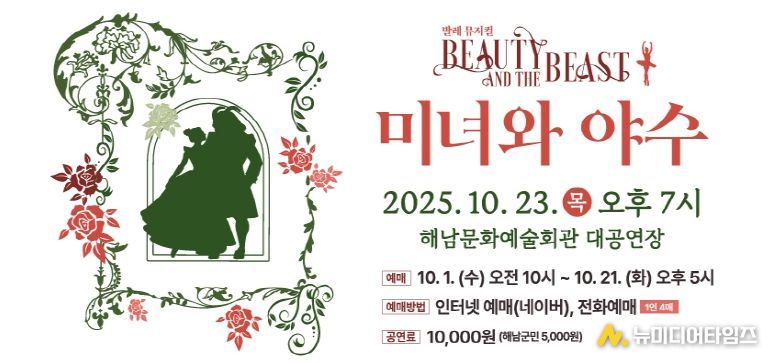 해남군은 오는 10월 23일 오후 7시 해남문화예술회관 대공연장에서 발레뮤지컬 ‘미녀와 야수’공연을 선보인다.