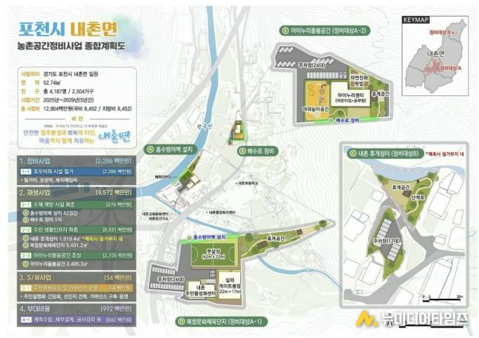 포천시가 농림축산식품부가 추진한 ‘2025년 농촌공간정비 추가공모사업’에 선정되어, 2029년까지 내촌면 일원에서 추진할 공간정비사업 예산 129억 원을 확보했다.