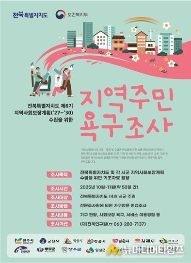 전북특별자치도가 지역사회 복지 욕구를 체계적으로 파악하고 주민이 체감하는 복지정책을 수립하기 위해 전 도민을 대상으로 지역주민 욕구조사를 실시한다.