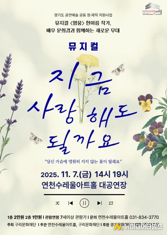 연천군시설관리공단(연천수레울아트홀)은 2025 경기도 공연예술 공동 창·제작 지원 시범사업에 선정되어, (재)구리문화재단 및 ㈜아츠온과 함께 창작 뮤지컬 〈지금 사랑해도 될까요〉를 공동 제작하여 선보인다.