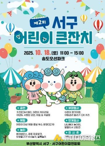 제2회 서구 어린이 큰잔치가 오는 10월 18일 오전 11시부터 오후 3시까지 송도오션파크 힐링의 광장에서 열린다.