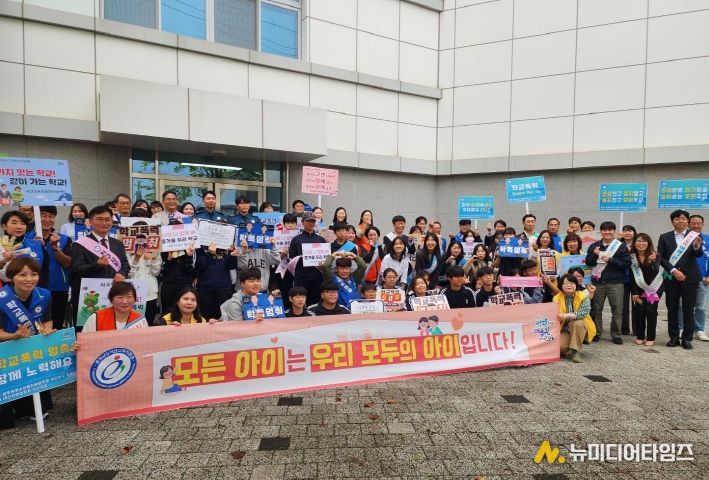 서산교육지원청은 14일 성연중학교 통학로에서 등굣길 학교폭력 예방 캠페인을 전개했다.