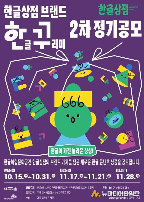 세종시문화관광재단은 한글복합문화공간 한글상점의 글자, 캐릭터를 활용해 한글의 조형적 아름다움을 새롭게 해석하고, 이를 디자인 상품으로 개발하기 위한 ‘한꾸(한글꾸러미)’ 2차 디자인 공모전을 개최한다.