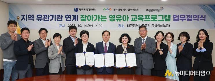대전시교육청은 10월 14일 대전광역시사회서비스원 및 대전문화재단과'지역 유관기관 연계 찾아가는 영유아 교육프로그램'운영 업무협약을 체결했다고 밝혔다.
