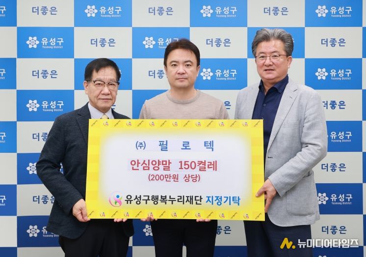 대전 유성구는 14일 ㈜필로텍(대표 이영민)이 유성구행복누리재단에 ‘안심양말’ 150켤레(총 200만 원 상당)를 기탁했다고 밝혔다.