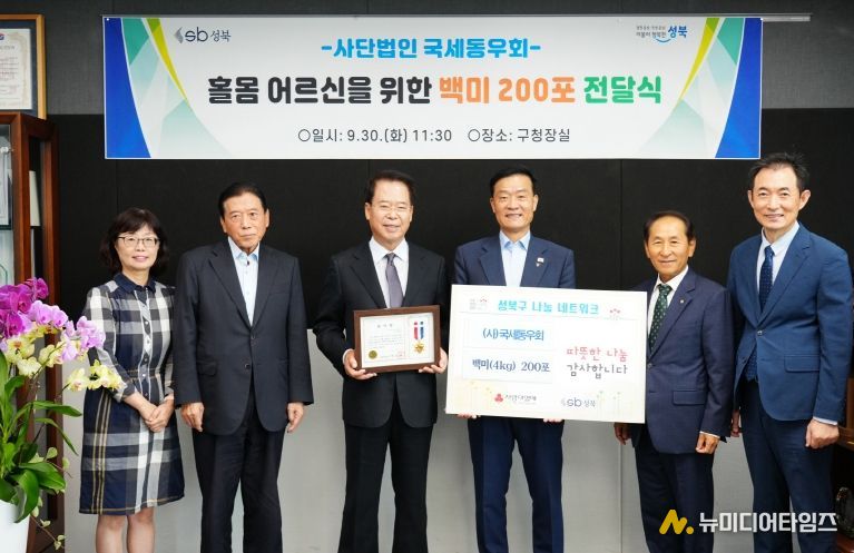 서울 성북구가 지난 9월 30일 백미 800㎏(4㎏들이 200포)을 기부한 (사)국세동우회 자원봉사단(단장 정환만)에게 감사장을 수여하며 나눔의 자리를 가졌다.