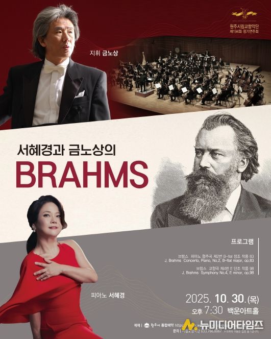 원주시립교향악단은 오는 30일 오후 7시 30분, 백운아트홀에서 제194회 정기연주회 ‘서혜경과 금노상의 브람스(BRAHMS)’를 개최한다.