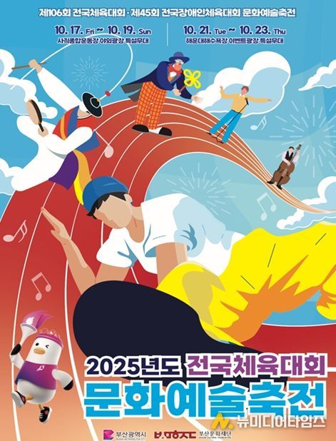 부산시는 오는 10월 17일부터 23일까지 6일간 해운대해수욕장 이벤트 광장과 부산사직운동장 야외광장 일원에서 '2025 전국(장애인)체전 문화예술축전 '웨이브 온! 부산!(Wave On! Busan!)''을 개최한다고 밝혔다.
