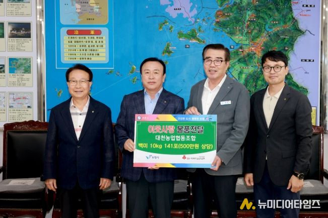 김영관 대천농협 조합장은 “청사 준공을 축하해주신 분들의 마음을 지역의 어려운 이웃들과 나누고자 기부를 결정했다”며 “앞으로도 지역민과 함께 상생하며 나눔 문화를 확산시켜 나가겠다”고 말했다.