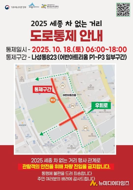 이날 한마당 행사가 진행되는 18일 오전 6시부터 오후 6시까지는 나성동 어반아트리움과 백화점 부지 사이 약 400m 구간 도로에서 차량이 통제된다.