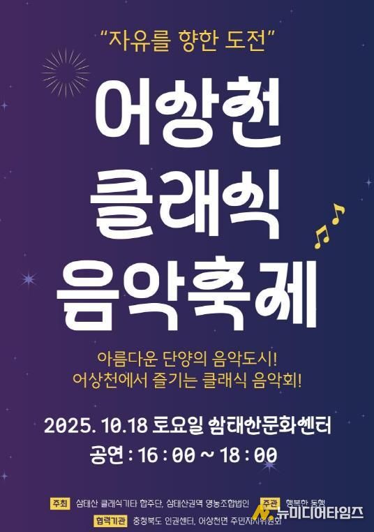 충북 단양군은 오는 18일, 어상천 삼태산문화센터에서 ‘제3회 어상천 클래식음악축제’가 열린다고 밝혔다.