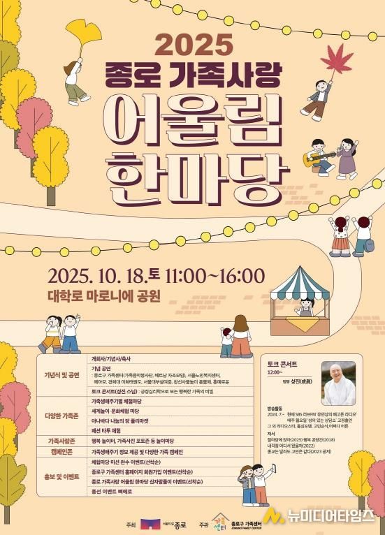 종로구는 10월 18일 11시부터 16시까지 대학로 마로니에공원에서 '2025 종로 가족사랑 어울림한마당'을 개최한다.