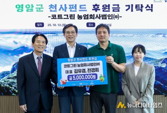 코트그린농업회사법인(주)(대표 김유겸·전성희)가 13일 영암군청에 천사펀드 500만원, 고향사랑기부금 200만원을 각각 전달했다.