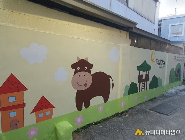 이번 사업을 통해 약 50미터 구간 오래된 담벼락이 생동감 있는 벽화로 새 단장을 마쳤다.