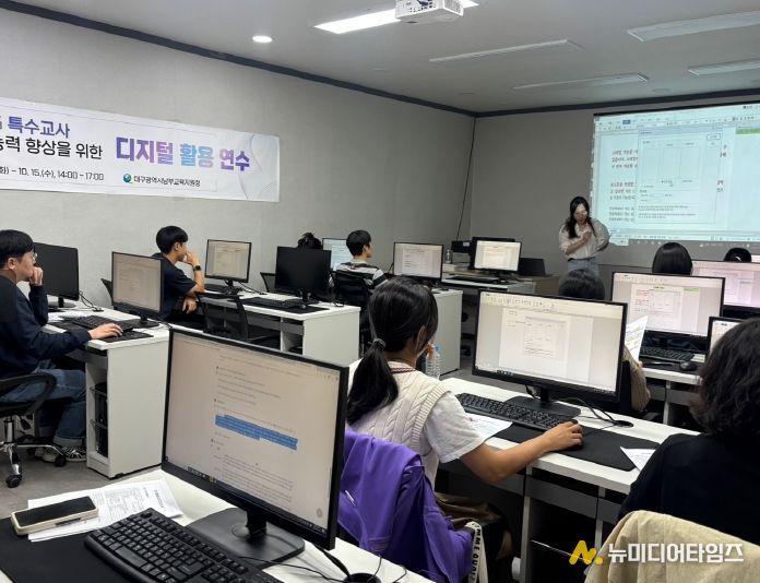 대구남부교육지원청은 10월 14일과 15일 이틀간 새빛캐드컴퓨터학원에서 남부특수교육지원센터 교사 15명을 대상으로 디지털 활용 연수를 진행했다고 밝혔다.