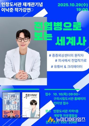 특히 작가초청 강연에는 『중증외상센터 : 골든아워』의 원작자인 이낙준 작가가 참여한다. 행사는 10월 29일(화) 저녁 7시, 새롭게 단장한 지하 1층 북카페형 개방 공간에서 진행된다.