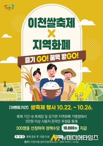 이천시는 2025 이천쌀문화축제 기간에 지역화폐 이용을 촉진하고 지역경제를 활성화하기 위해 코나아이(주)의 경기지역화폐 사회공헌 재원을 활용하여 ‘이천쌀축제, 지역화폐로 즐기고(GO), 혜택받고(GO)’ 이벤트를 추진한다고 밝혔다.