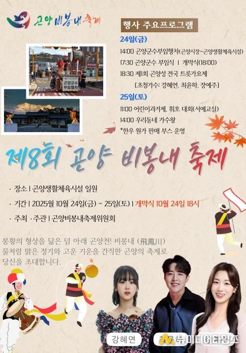 또한, 이날 오후 6시 30분부터 제1회 곤양성 전국 트롯가요제가 펼치지며, 초청가수 강혜연, 최윤하, 장예주 등의 축하공연이 무대를 뜨겁게 달굴 예정이다.