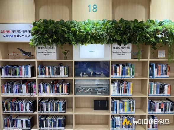 그리고, 관련 서가에는 우주와 항공을 주제로 한 디스플레이와 사천시 항공 우주 관련 홍보영상 함께 구성돼 시각적 몰입감을 더했다.