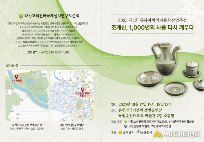 전통 제다문화의 역사와 미학, 예술적 감성을 아우르는 ‘제7회 동북아 차역사문화산업축전’이 (사)고려천태국제선차연구보존회 주관으로 오는 17일부터 18일까지 순천만국가정원 갯벌공연장과 국립순천대학교 박물관에서 열린다.