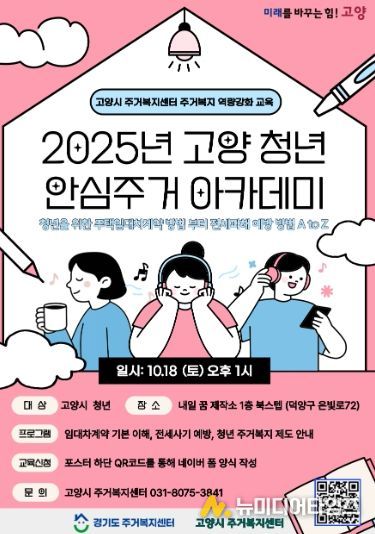 고양특례시는 청년층의 안정적인 주거생활을 지원하기 위해 오는 10월 18일 13시 내일꿈제작소(덕양구 은빛로 72)에서 ‘2025 고양청년 안심주거 아카데미’를 개최한다고 밝혔다.