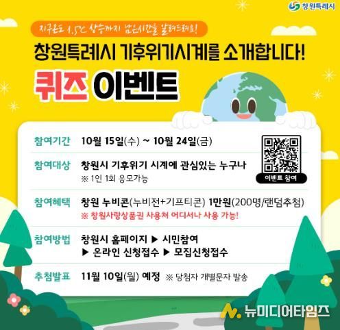 창원특례시는 기후위기의 심각성을 알리고 시민의 관심과 참여를 독려하기 위해 기후위기 시계를 소개하는 퀴즈 이벤트를 개최한다고 15일 밝혔다.