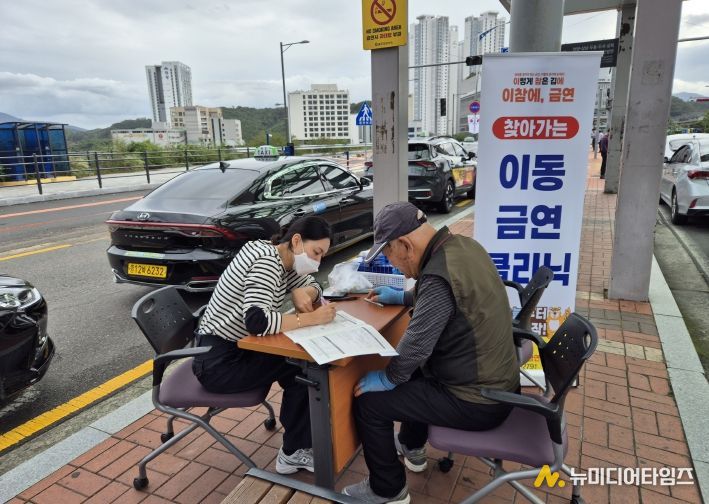 울주군보건소가 15일 KTX울산역에서 버스·택시 기사를 대상으로 이동 금연클리닉을 운영했다.