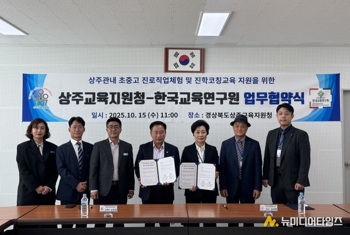 경상북도상주교육지원청은 10. 15. 11:00, 교육지원청 2층 소회의실에서 『2025학년도 행복교육 실현을 위한 업무협약(MOU) 체결식』을 주관하고, 한국교육연구원과 함께 지역 학생들의 미래 역량 강화를 위한 공동 협력에 나섰다.