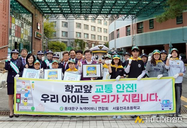 서울 동대문구는 15일 오전 전곡초등학교 정문 어린이보호구역(스쿨존)에서 등굣길 교통안전 캠페인을 실시했다고 밝혔다.