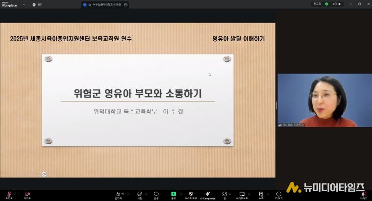 이 날 교육은 △ 위험군 영유아 부모의 심리적 특성 및 교사 지원 전략 △ 위험군 영유아 부모와의 상담 방법 등으로 구성됐다.