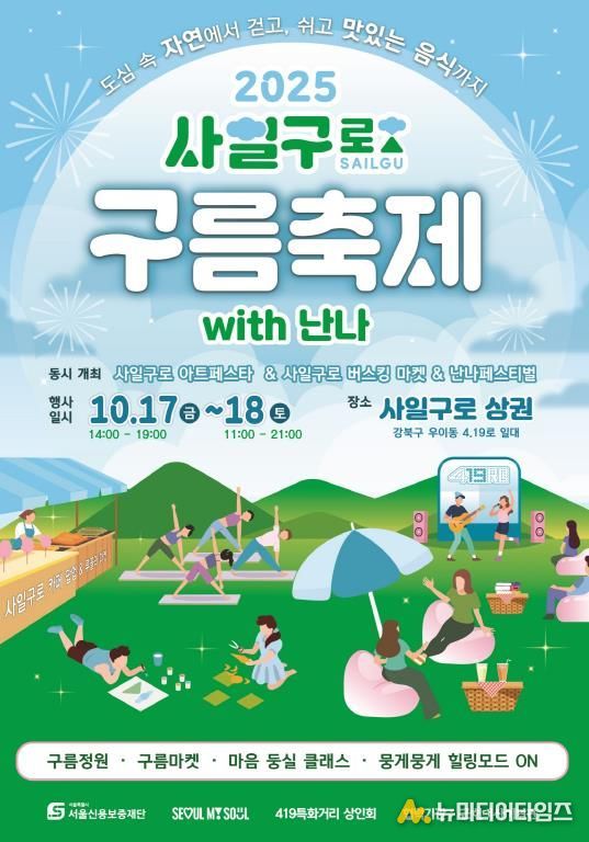 여기에 ‘뭉게뭉게 힐링모드 ON’ 스탬프 투어, 포토존, 그리고 ‘사일구로 카페 팝업’과 ‘사일구로 북한산 농장’ 등의 콘셉트로 꾸며진 푸드존까지 더해져, 주민과 방문객이 함께 먹고 쉬며 즐길 수 있는 지역 축제로 꾸며진다.