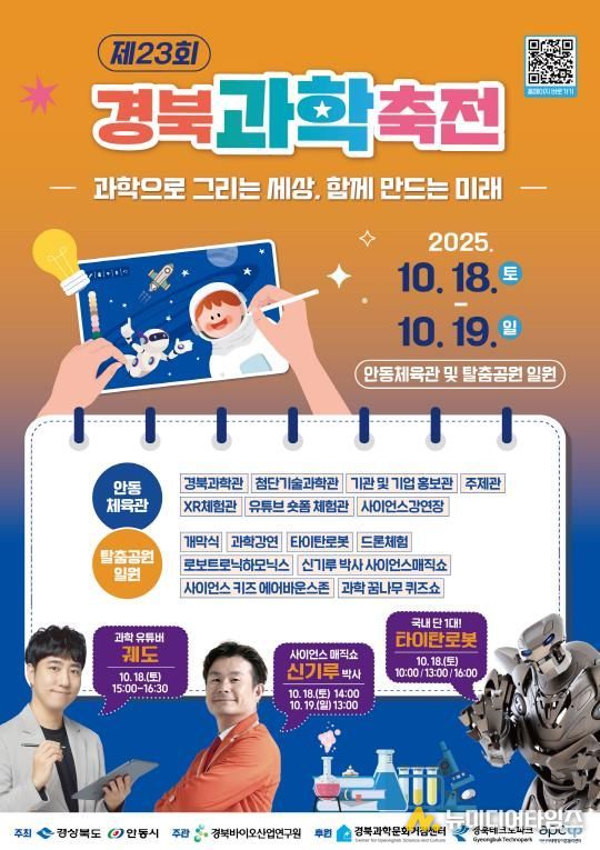 경상북도와 안동시가 주최하고 (재)경북바이오산업연구원이 주관하는 ‘제23회 경북과학축전’이 오는 10월 18일부터 19일까지 2일간 안동체육관 및 탈춤공원 일원에서 열린다.