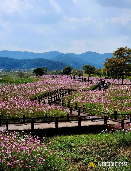 나주 영산강정원은 분홍, 노랑 등 형형색색의 대규모 코스모스 꽃길이 조성됐다.