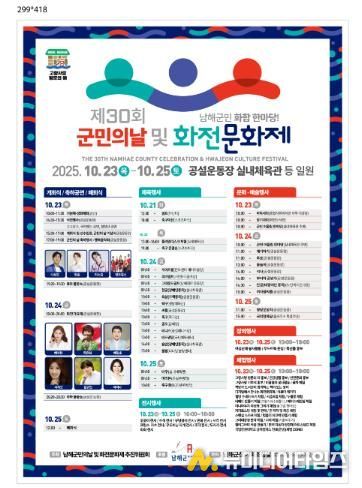 남해군민의날추진위원회는 오는 10월 23일부터 25일까지 3일간 남해공설운동장과 실내체육관 일원에서 ‘제30회 군민의 날 및 화전문화제’를 개최한다.