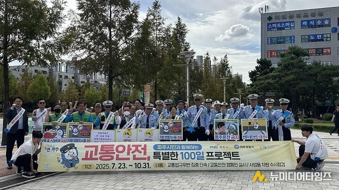 파주시는 교통사고 사망자 수 30% 감축을 통한 ‘교통안전 선도도시’ 도약을 목표로 지난 7월 23일부터 시민과 함께하는 ‘교통안전, 특별한 100일 프로젝트가 순항 중이라고 밝혔다.