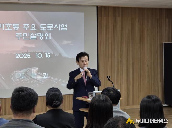 이번 설명회는 가호동 일원에서 추진 중인 통행불편 해소를 위한 ▲방아교차로 주변 도로 개선사업 ▲화물차 공영차고지 인근 교차로 개선사업 ▲은하수초등학교 앞 보도육교 개설사업 등 주요 도로사업 현황과 향후 계획을 주민들과 공유하고, 의견을 수렴하기 위해 마련됐다.
