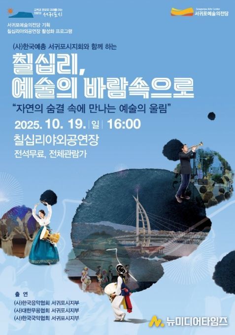 서귀포예술의전당은 10월 19일 오후 4시, 칠십리야외공연장에서 '칠십리, 예술의 바람 속으로' 공연을 개최한다.