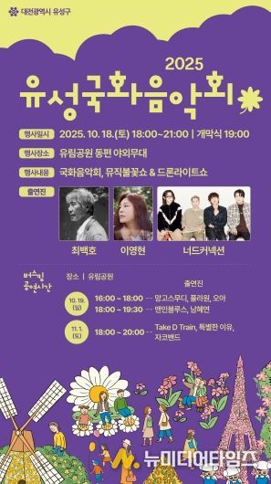 대전 유성구는 오는 18일 오후 6시 유림공원에서 ‘제16회 유성국화축제’의 개막을 알리는 ‘2025 유성국화음악회’를 개최한다.
