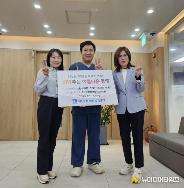 지난 15일, 수원시 영통구 소재 미소마취통증의학과의원은 관내 저소득 어르신들이 따뜻한 겨울을 보낼 수 있도록 매탄2동 행정복지센터에 100만원 상당의 온수매트 8세트를 기부했다.