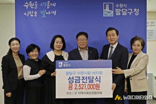 수원시 팔달구와 구 지역사회보장협의체는 지난 15일 구청장실에서 ‘팔달구 이웃사랑 바자회’ 성금 전달식을 가졌다.