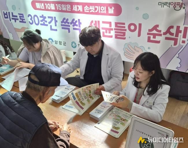 양평군은 15일 ‘세계 손 씻기의 날’을 기념해, 양동면 쌍학 2리 마을회관에서 ‘달리는 행복나눔이웃들’ 운영과 연계한 유관기관 합동 홍보 캠페인을 실시했다.