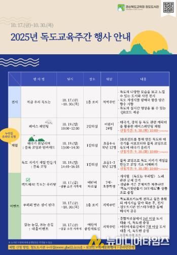 경상북도교육청 청도도서관은 오는 10월 17일부터 30일까지 지역 주민을 대상으로 '2025년 독도교육주간 행사'를 운영한다.