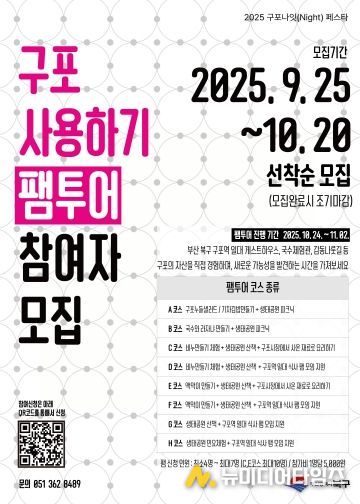 부산 북구는 오는 10월 24일부터 11월 2일까지 구포역 광장과 도시재생 거점공간 일원에서 지역 상권과 거점시설을 연결한 체험형 관광축제 ‘구포 나잇(Night) 페스타 – 구포 사용하기’ 행사를 개최한다고 밝혔다.