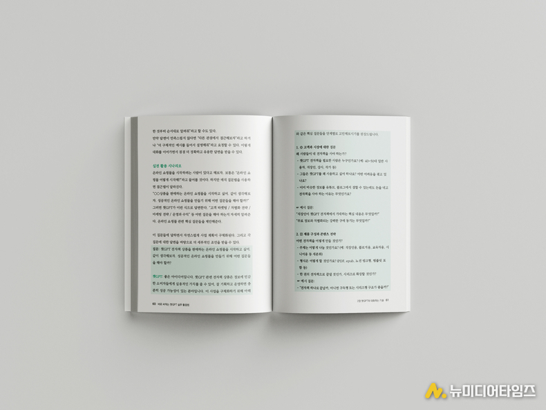 각 장마다 바로 복사해서 사용할 수 있는 프롬프트 템플릿을 제공하며, 이론보다는 실전 활용에 집중한 구성이 특징이다. 일주일 식단표가 필요할 때 단순히 "식단표 만들어줘"가 아니라 "4인 가족, 중학생 자녀 둘, 당뇨 환자 1명을 위한 일주일 식단표를 아침, 점심, 저녁으로 나누어 칼로리와 주요 영양소 표시와 함께 만들어줘"라고 질문하는 구체적인 방법을 제시한다. 이런 식으로 122개의 꼭지마다 즉시 적용 가능한 해결책을 담았다.