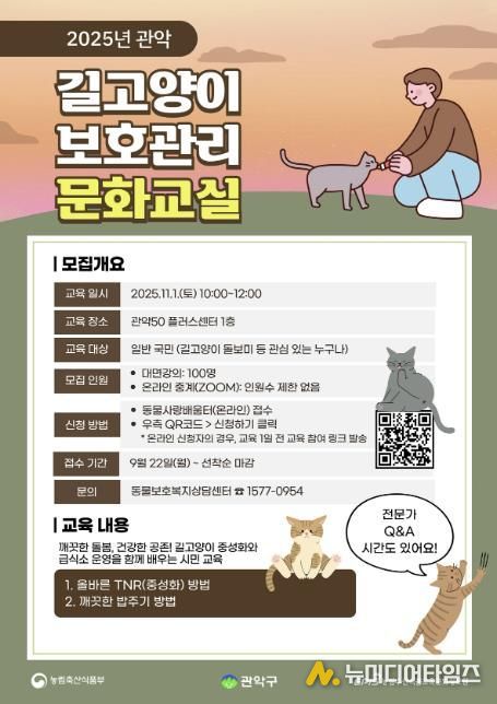 도심 속 주민과 길고양이와의 공존에 대한 사회적 관심이 높아지는 가운데, 관악구(구청장 박준희)가 오는 11월 1일 ‘길고양이 보호 관리 문화 교실’을 개최한다.